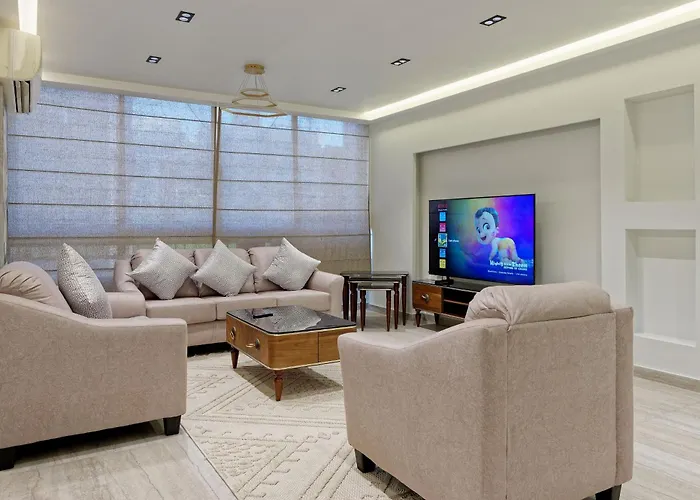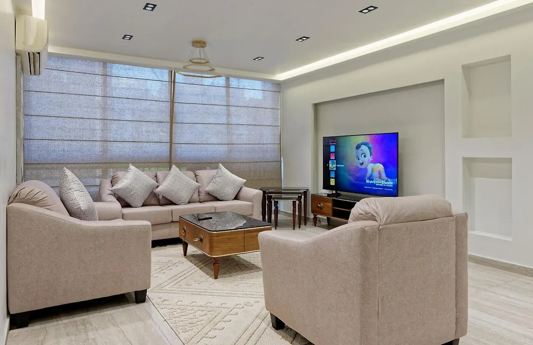 Located 21 km from El Giza railway station, the 100 m² Vesta - Heliopolis Residence Cairo is only an 8-minute walk from the Saqqara Pyramids. Guests can make use of Wi-Fi for both business and leisure purposes.
